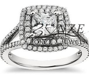 This is a stunning (and sparkling) engagement ring. A unique setting (double halo, split shank) (0.8 ct) that brings the total diamond count above 2 ct. White gold, Carat: Shape: Color: Clarity: Cut: Certification: Marketplace: Certificate ... View Video