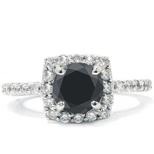 1.60CT Black Diamond Pave Halo Engagement Ring 14K White Gold ...